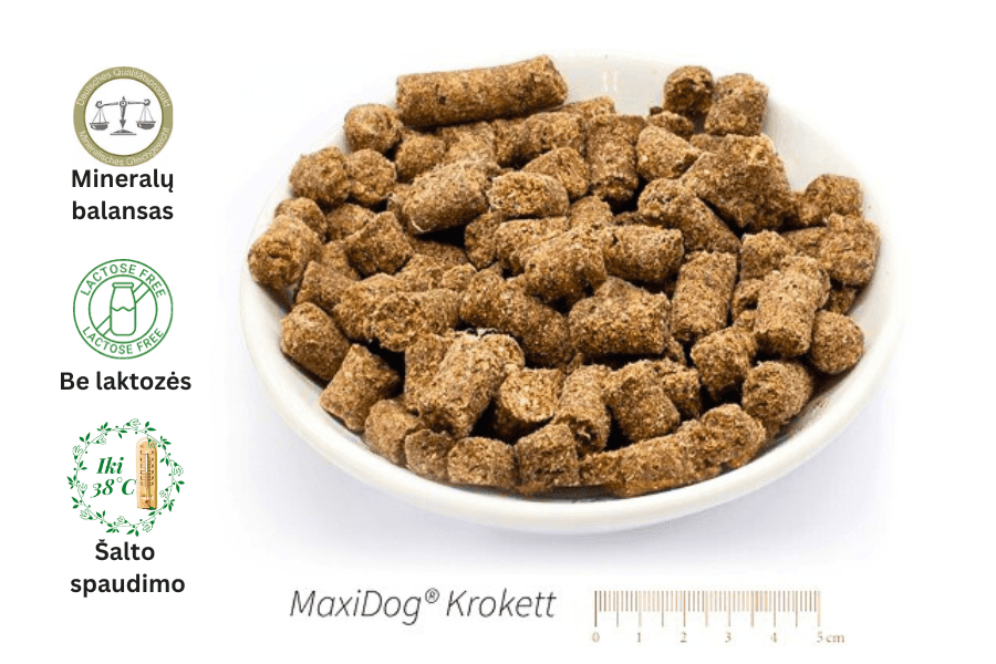 Pigus, vieno baltymo, šalto spaudimo šunų maistas MaxiDog KROKETT ❄️